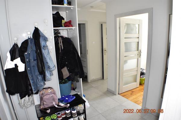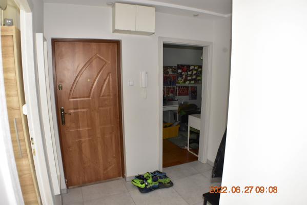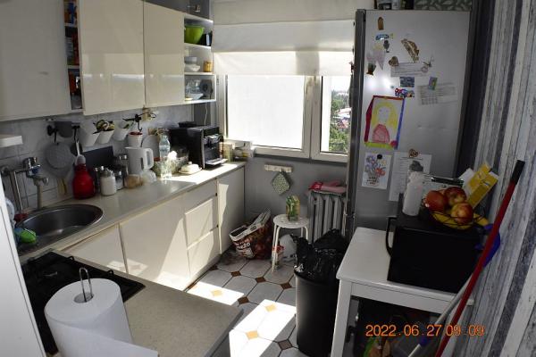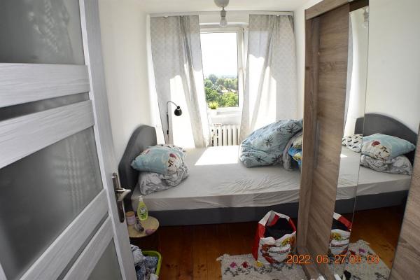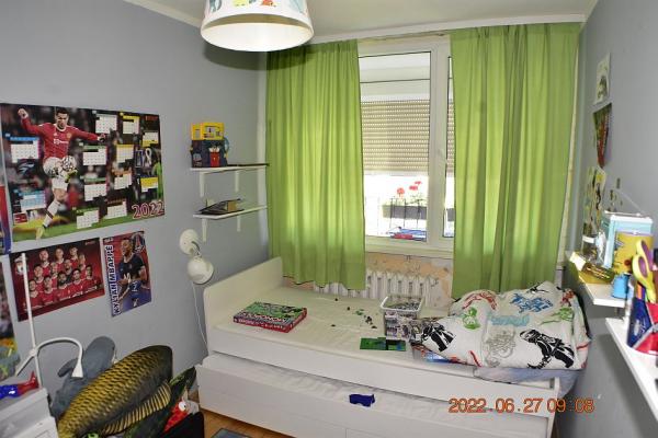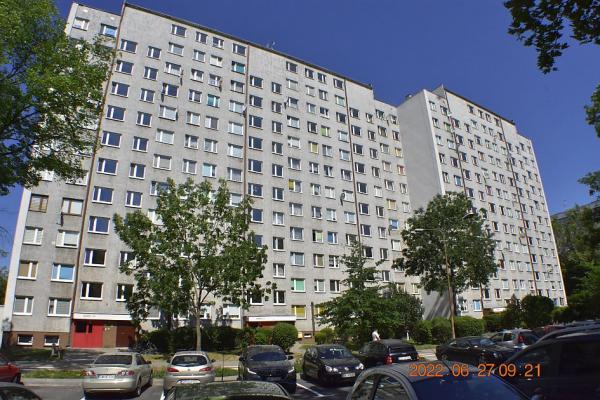W kondygnacji podziemnej znajdujÄ… siÄ™ pomieszczenia piwniczne. Lokal Å›rodkowy, poÅ‚ożony na X piÄ™trze (ostatnim), okna z lokalu na dwie strony. Pow.: pokój 20,44m2; pokój 9,00m2; pokój 9,20m2; kuchnia 7,00 m2; Å‚azienka 2,60m2, wc 1,10m2; przedp. 7,60m2 - razem 56,94 m2 W kuchni kuchenka gazowa 4-palnikowa z piekarnikiem; instalacje: wodna, kanalizacyjna, elektryczna i gazowa; ogrzewanie centralne miejskie, grzejniki w wiÄ™kszoÅ›ci żeliwne żeberkowe, w Å‚azience grzejnik drabinkowy. UkÅ‚ad funkcjonalny, rozkÅ‚adowy, z jasnÄ… kuchniÄ…, Å‚azienkÄ…, oraz z osobnym wc, lokal posiada loggiÄ™ i prawo korzystania z przynależnej piwnicy o powierzchni 2,10m2. Pow. w KW 59,04 m2 jest sumÄ… pow. lokalu i pom. przynależnych.