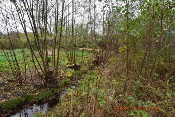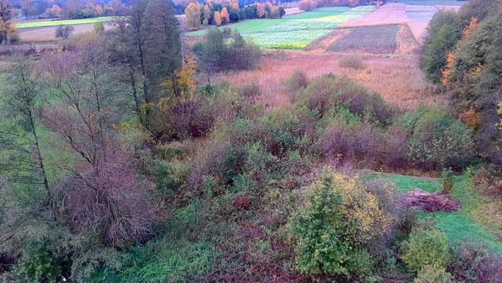 Zagospodarowanie terenu : teren działki jest podmokły, nieogrodzony, nieutwardzony, niezabudowany, porośnięty dziką zielenią: trawami, trzcinami oraz młodym drzewostanem. Drzewostan to młode samosiejki oraz odrosty o pierśnicy od 3 do 6cm i wysokości 5-6m, nieprzedstawiający większej wartości użytkowej. Teren, na którym nieruchomość nie jest objęty MPZP, w/g studium działka położona jest w obszarze oznaczonym jako: tereny łąk i pastwisk oraz wód powierzchniowych. Teren działki 110/2 położony jest na projektowanym obszarze chronionego krajobrazu „Wzgórza Trzebnickie”