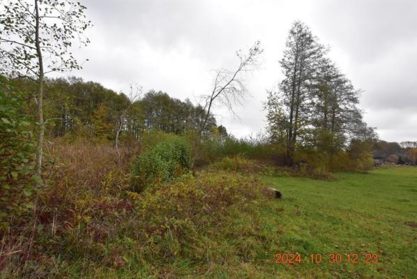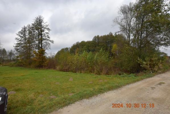 Działka ma wydłużony kształt zbliżony do prostokąta o wymiarach: max szerokości 48m i max długości 152m, zorientowana na kierunku północny-zachód – południowy-wschód, deniwelacja terenu na przestrzeni działki wynosi 4m. W/g wypisu z rejestru gruntów wstępują grunty klas: RV grunty orne o pow. 0,05 ha, PsIV pastwiska trwałe o pow. 0,59 ha, WPsIV grunty pod rowami o pow. 0,04 ha. Rodzaje gleb : na początku i końcu działki gleby bielicowe i pseudobielocowe; w środku działki gleby mułowo-torfowe - szczegóły na mapie glebowo-rolniczej. Oznaczenie kompleksu : na początku i końcu działki użytki zielone średnie; w środku działki użytki zielone słabe i bardzo słabe - szczegóły na mapie glebowo-rolniczej. Rodzaje i gatunek gleb : na początku i końcu działki pyły ilaste przechodzące na głębokości od 50-100cm w piasek słabo gliniasty; w środku działki gleby mułowo-torfowe. Dojazd do nieruchomości odbywa się z szutrowej drogi gminnej,przy działce brak sieci uzbrojenia terenu.