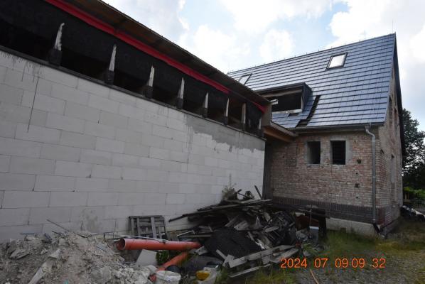 Nieruchomość gruntowa zabudowana o powierzchni 0,0868 ha, oznaczona jako dziaÅ‚ka ewidencyjna o numerze 41. Przedmiotowa nieruchomość ma urzÄ…dzonÄ… ksiÄ™gÄ™ wieczystÄ… w V Wydziale KsiÄ…g Wieczystych w OleÅ›nicy o numerze KW WR1E/0008938/4. Nieruchomość poÅ‚ożona we wschodniej części miasta OleÅ›nicy przy ulicy Armii Krajowej 38, w odlegÅ‚oÅ›ci 1,4km od centrum na terenie osiedla domów jednorodzinnych, dojazd bezpoÅ›redni do nieruchomoÅ›ci z tej ulicy. DziaÅ‚ka uzbrojona, ogrodzona, zabudowana budynkiem mieszkalnym, częściowo utwardzona, poroÅ›niÄ™ta zieleniÄ…, zabudowana domem mieszkalnym w trakcie rozbudowy. Budynek jednorodzinny - obiekt skÅ‚adajÄ…cy siÄ™ z dwu części: istniejÄ…cej frontowej oraz dobudów realizowanej na tyÅ‚ach budynku. Część frontowa to przedwojenny obiekt wolnostojÄ…cy, podpiwniczony, dwukondygnacyjny (parter z poddaszem użytkowym).Dobudówka jest niepodpiwniczona, parterowa z pÅ‚askim dachem. Rozbudowa wykonana jest na podstawie decyzji o pozwoleniu na budowÄ™ z 09-02-2012 roku oraz decyzji zmieniajÄ…cej z 25-08-2015. GÅ‚ówne wejÅ›cie do budynku znajdować siÄ™ bÄ™dzie od poÅ‚udnia (z boku od podwórka drogi). Z tyÅ‚u budynku znajduje siÄ™ dodatkowo wyjÅ›cie na taras. Budynek zostaÅ‚ podłączony do sieci wodnokanalizacyjnej, sieci elektroenergetycznej i gazowniczej. Na podstawie udostÄ™pnionego projektu budowlanego biegÅ‚y ustalliÅ‚ podstawowe dane techniczne obiektu po rozbudowie: pow. zabud. (95+80) 175m2, pow.użytk.(134,1+58,1) 192,2m2,, kubatura (780+168) 948m3 PowierzchniÄ™ użytkowÄ… budynku biegÅ‚y okreÅ›liÅ‚ na podstawie części rysunkowej projektu budowlanego, ponieważ powierzchnia użytkowa podana w części opisowej projektu zawiera także powierzchniÄ… piwnicy. SzczegóÅ‚owy opis ukÅ‚adu budynku, elementów budynku i stopnia zaawansowania budowy dostÄ™pny w kancelarii komornika po wczeÅ›niejszym uzgodnieniu telefonicznym terminu wglÄ…du do operatu.